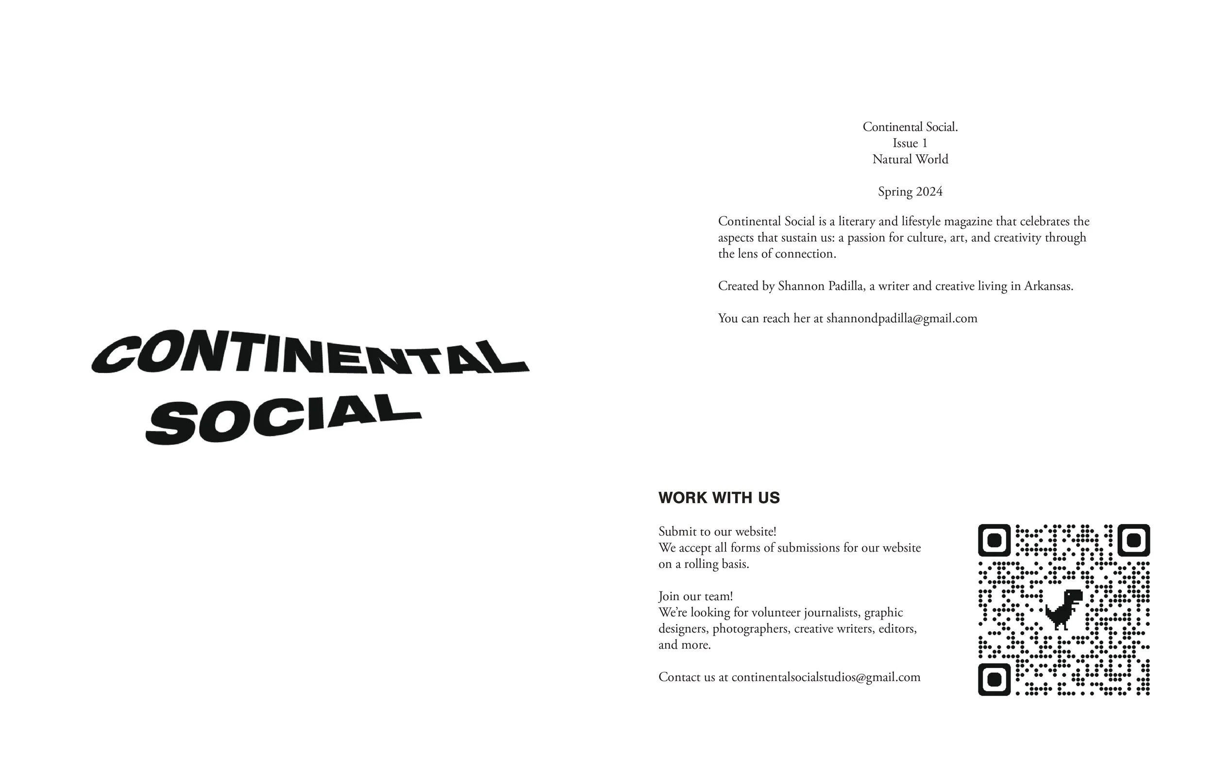 Curated, edited, self-published, and designed with print in mind, Continental Social is a multidisciplinary literary and lifestyle magazine that celebrates the aspects of life that sustain us; passion for culture, science, and creativity through the lens of connection.